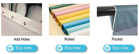 1. Añade el bolsillo o agujero superior/inferior. 2. Fondo de envío enrollado. 3. Se puede personalizar en cualquier tamaño. 4. El fondo puede ser un patrón personalizado, agregar fotos, modificar el color/estilo. 5. Envío directo. 6. Pedido especialmente acelerado, procesado en 24-48 horas y enviado.